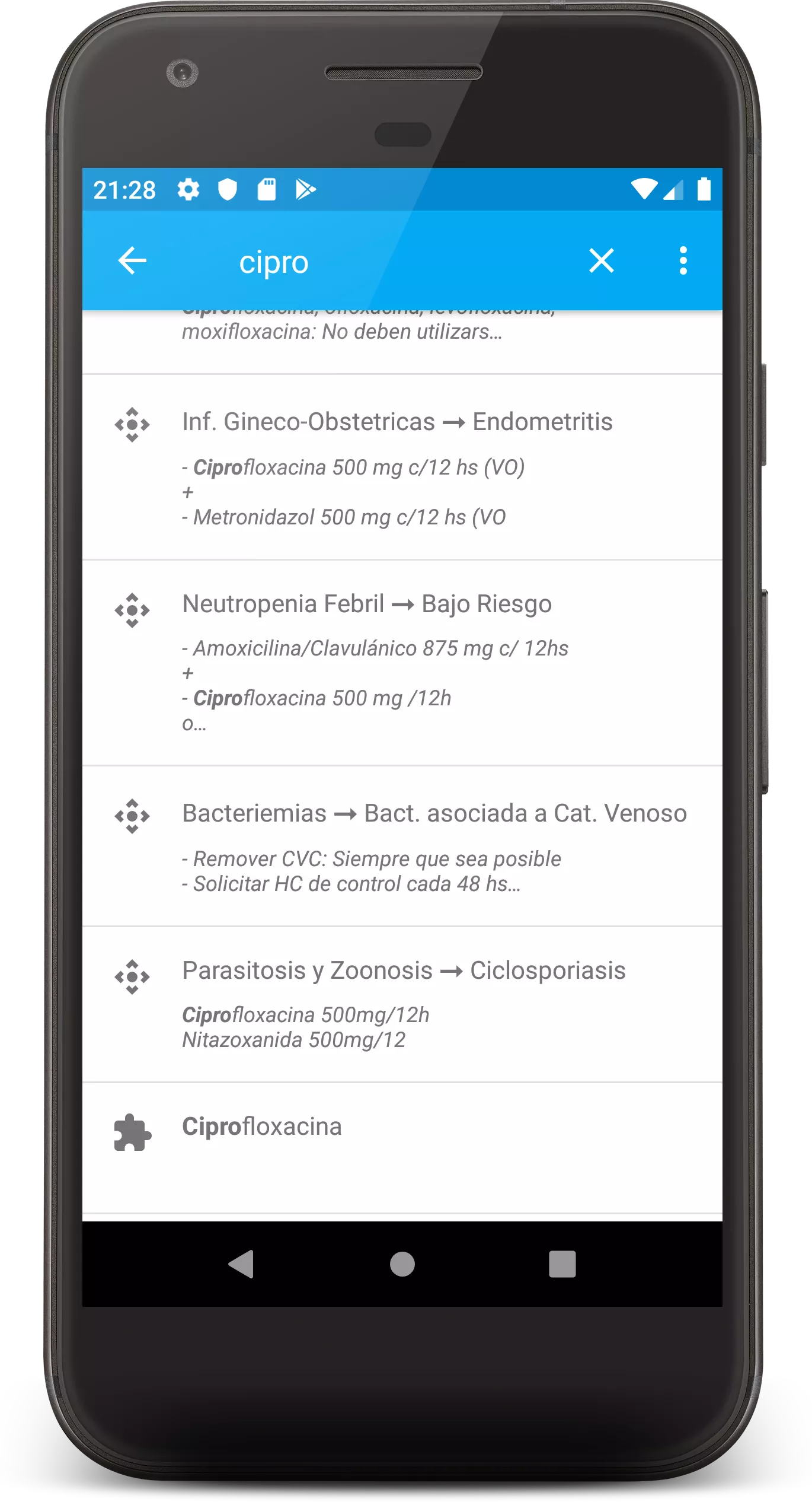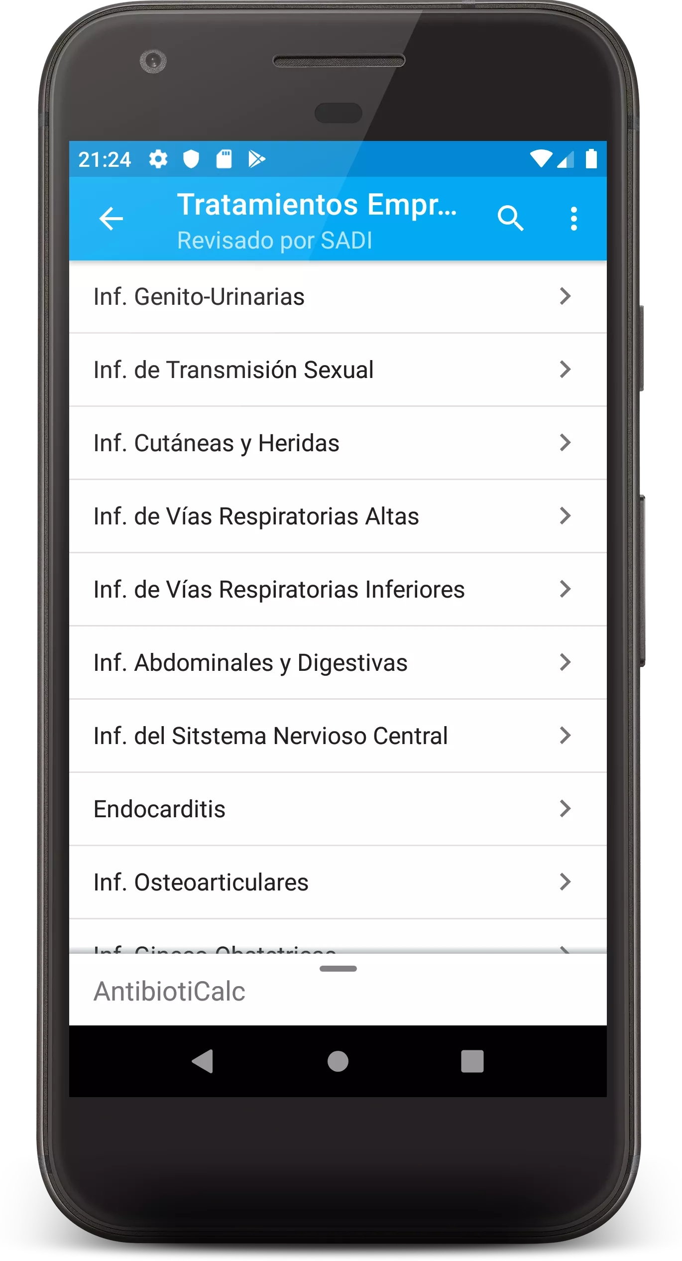AntibioticApp es una aplicación para dispositivos móviles de descarga gratuita que ofrece información sintética, práctica y actualizada referente a enfermedades infecciosas. Dirigida a médicos, farmacéuticos, enfermeros u otro personal de salud interesado.
